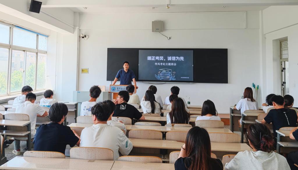 在明确诚信考试观念的基础上,各位辅导员就如何践行诚信、严格遵守考试纪律提出明确要求。通过辅导员的深入讲解,同学们深刻认识到诚信考试的分量,进一步增强了规则意识和敬畏之心。辅导员在最后的总结中勉励全体同学,要深刻理解诚信对于个人成长与未来发展的深远意义,将诚信意识内化于心、外化于行,以扎实学识与高尚品德,在考场上书写无愧于青春与梦想的答卷。