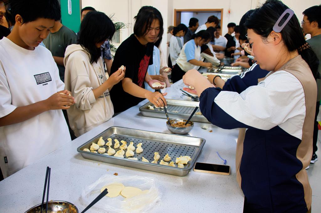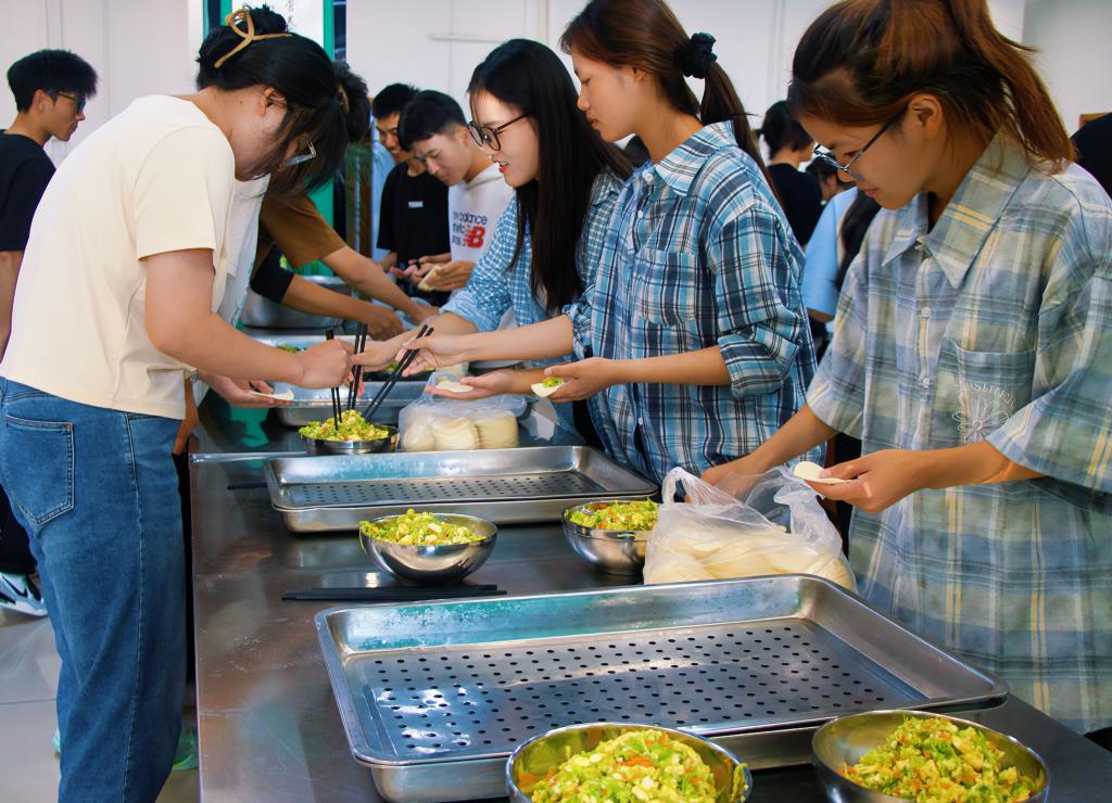 活动现场,伟德BV1946官网全体学工教师、国庆假期留校的2024级新生们欢聚一堂。大家热情高涨,相互交流包饺子的技艺。经过一个多小时的努力,一盘盘形状各异、充满创意的饺子终于摆满了餐盘。在食堂工作人员的精心烹饪下,一盘盘美味的饺子端上了餐桌。大家共同品尝了自己的劳动成果,现场洋溢着欢声笑语,气氛热烈而和谐。