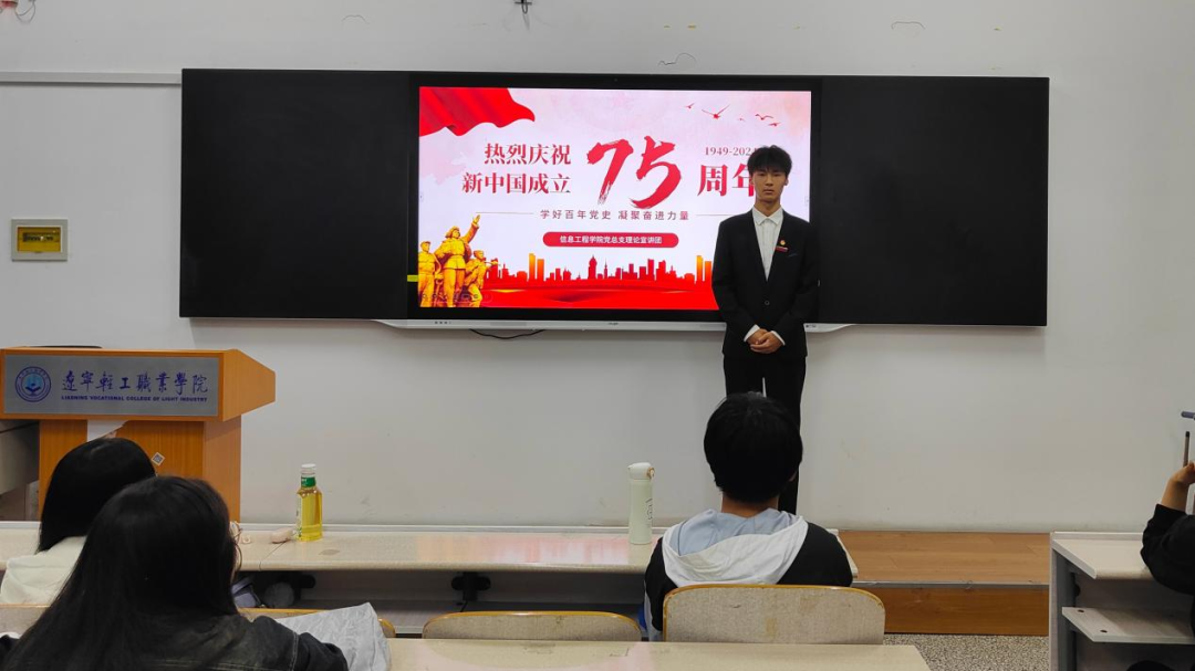 在庆祝新中国成立75周年的热烈氛围中,为使同学们深入学习党的历史,缅怀党的丰功伟绩,以更加饱满的热情和坚定的信念投身到中国式现代化的建设与发展中,伟德BV1946官网党总支理论宣讲团特此开展“七十五载铸辉煌,凝聚力量续华章”主题宣讲活动。