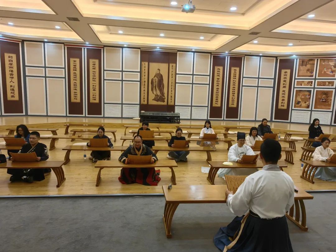 参观活动结束后,在讲解老师的带领下,教师党员来到中国孔子基金会指定的“孔子学堂”,穿上汉服,学习中华礼仪,同时沉浸式体验了射箭和非遗拓印。老师们不但学习了中华传统美德,同时对中华传统服饰、中国千载传承的技艺以及中国独特的审美情趣也有了更加深入地了解。