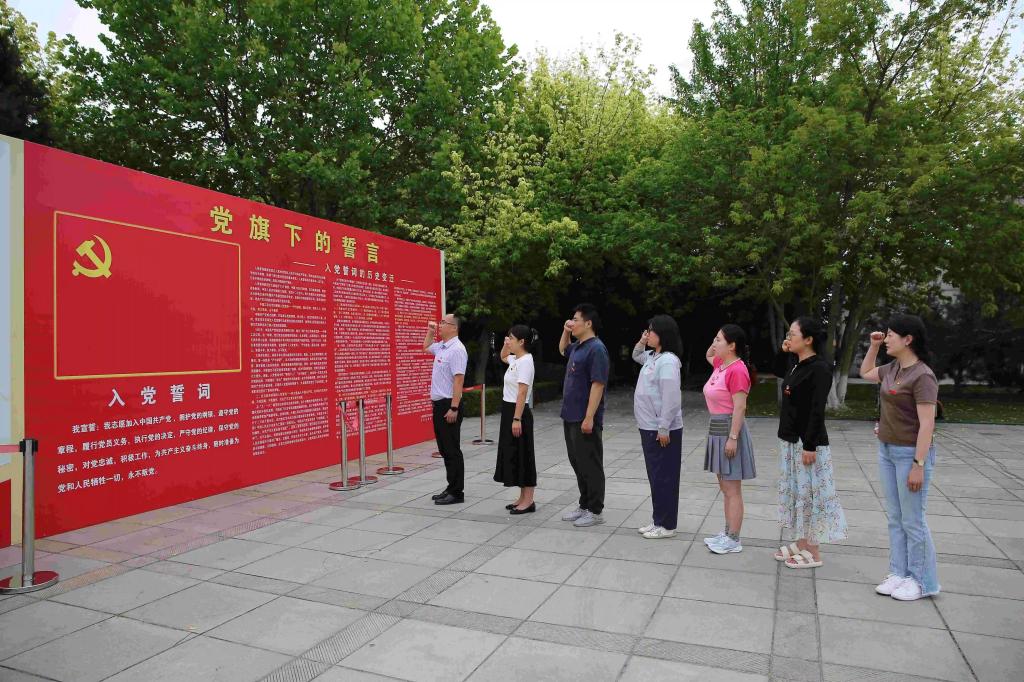 活动现场,党总支书记李树旺带领党员教师重温入党誓词。