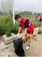 邵伊彤同学参加海边清扫垃圾志愿服务