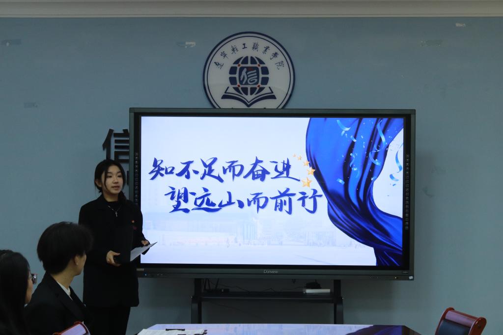 在主题分享环节,国家奖学金获得者:媒体2233班赵诗曼,励志奖学金获得者:媒体2232班薛妍,老员工标兵获得者:互联2331班马季阳,学习标兵获得者:物联网2331班杨慧卓,自立自强标兵获得者媒体2335班田鑫烨五位优秀员工代表轮番上台,结合自身实际情况,分享了自己在专业课程学习、团学干部工作、参加各类竞赛、志愿服务活动等方面的经验和心得。他们以鲜活的经验、科学的方法、昂扬的斗志感染了在场的所有同学,同学们不时报以热烈的掌声。