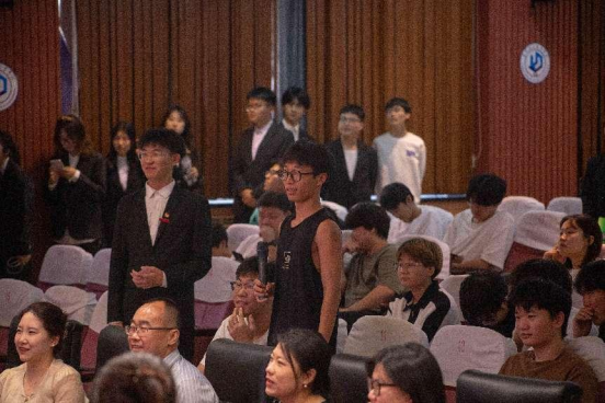 比赛现场还穿插了观众互动环节,同学们积极参与,竞相举手作答,整个场面热烈而充满活力,更是将现场气氛推向了高潮。