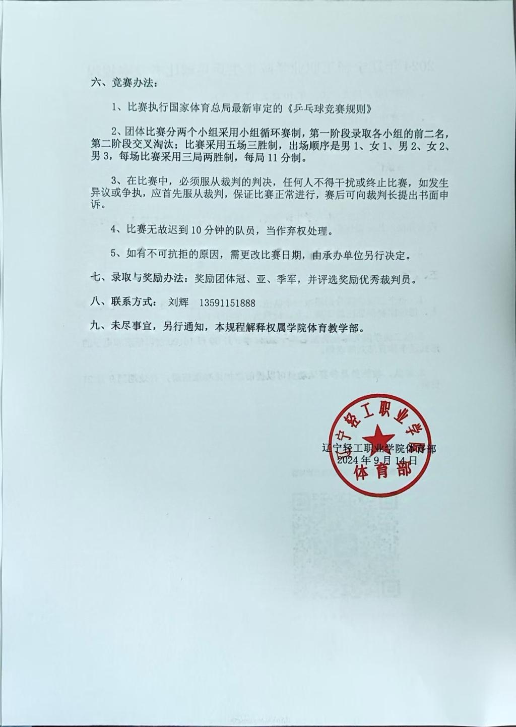 集团体育部下周二乒乓球比赛,规程如下。要求4男3女组成队伍,请有特长的同学积极参与,报名请联系班长。